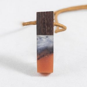 گردنبند رزین چوب گردو و سنگ و رنگ طبیعی