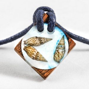 گردنبند رزین چوب گردو و صدف